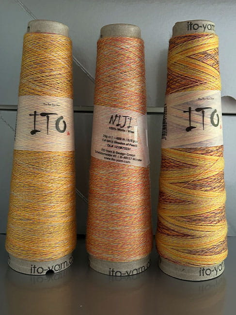 Włóczka nawinięta jest na cewce, nie są to identyczne kolory - nie ma możliwości wyboru odcieni cewki - trochę to niespodzianka!