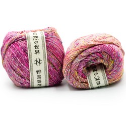 Połączenie jedwabiu i wełny, charakterystyczne dla włóczek Noro kolorowe jakby tweedowe nupki. Japońskie słowo "Tensan" oznacza jedwabnika - włóczka ta, to hołd starożytnym korzeniom jedwabiu- włókna cenionego za wytrzymałość, połysk i ponadczasowy luksus. W połączeniu z delikatną wełną włóczka ta łączy w sobie ciepło sprężystość i miękkość, jest przyjemna w dotyku.