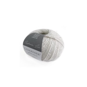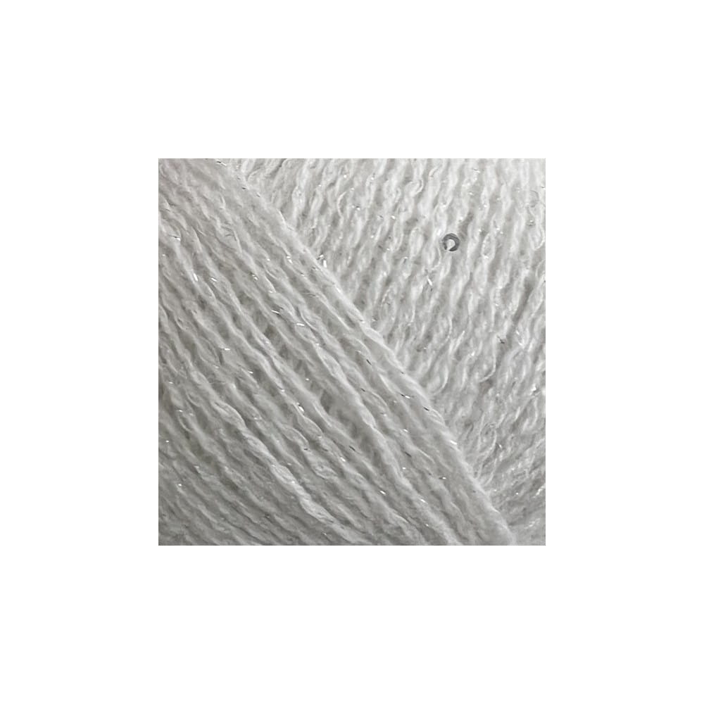 Włóczka kaszmirowa z dodatkiem cieniutkiej srebrnej nitki i rzadko rozmieszczonych maleńkich cekinów. Powstaje z niej przepiękna dzianina, bardzo elegancka, z subtelnym błyskiem. Warto z niej zrobić dodatki - czapkę, szalik, szal, ale można oczywiście także luksusowy sweter.